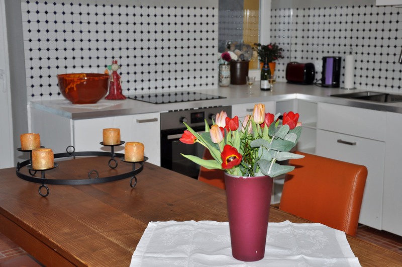Spülmaschine, Kaffeemaschine, Wasserkocher, Mikrowelle und Toaster. Komplett eingerichtet mit Geschirr, Töpfen, Besteck etc.